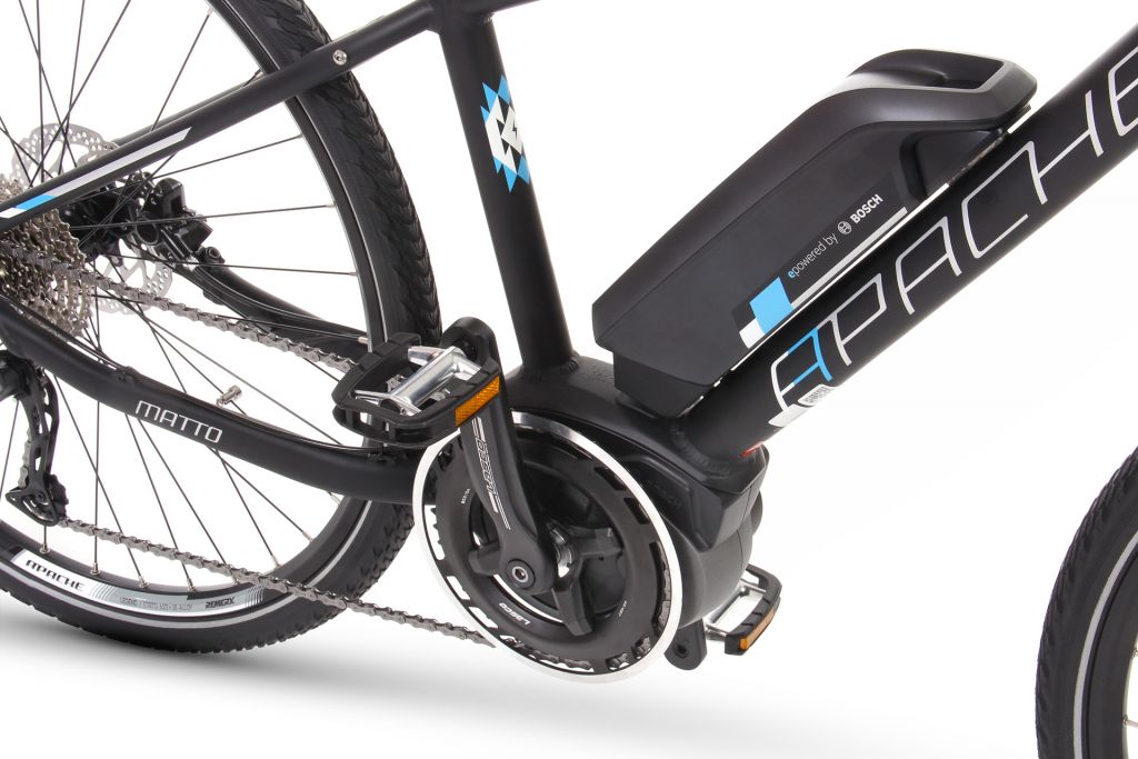 Vytvořit špičkové krosové elektrokolo v cenově dostupnějším, stále však velice kvalitním a atraktivním provedení. S tímto nelehkým úkolem se pravidelně potýkáme každou sezonu a ani ta letošní nebyla v tomto ohledu výjimkou. Výsledkem naší práce je sportovní krosové elektrokolo Apache Matto Active Plus, model s lehkým a zároveň tuhým hliníkovým rámem a novou řadou středového elektromotoru s vysokým točivým momentem. Se vzduchovou odpruženou vidlicí a hydraulickými kotoučovými brzdami se nemusíte zdržovat pouze na hladkých silnicích a cyklostezkách, překážkou vám nebudou ani zpevněné polní a lesní cesty či lehčí terén. Ať vyrazíte na svižnou sportovní vyjížďku, nebo na pohodový výlet s rodinou, Matto vám bude vždy náležitou oporou.