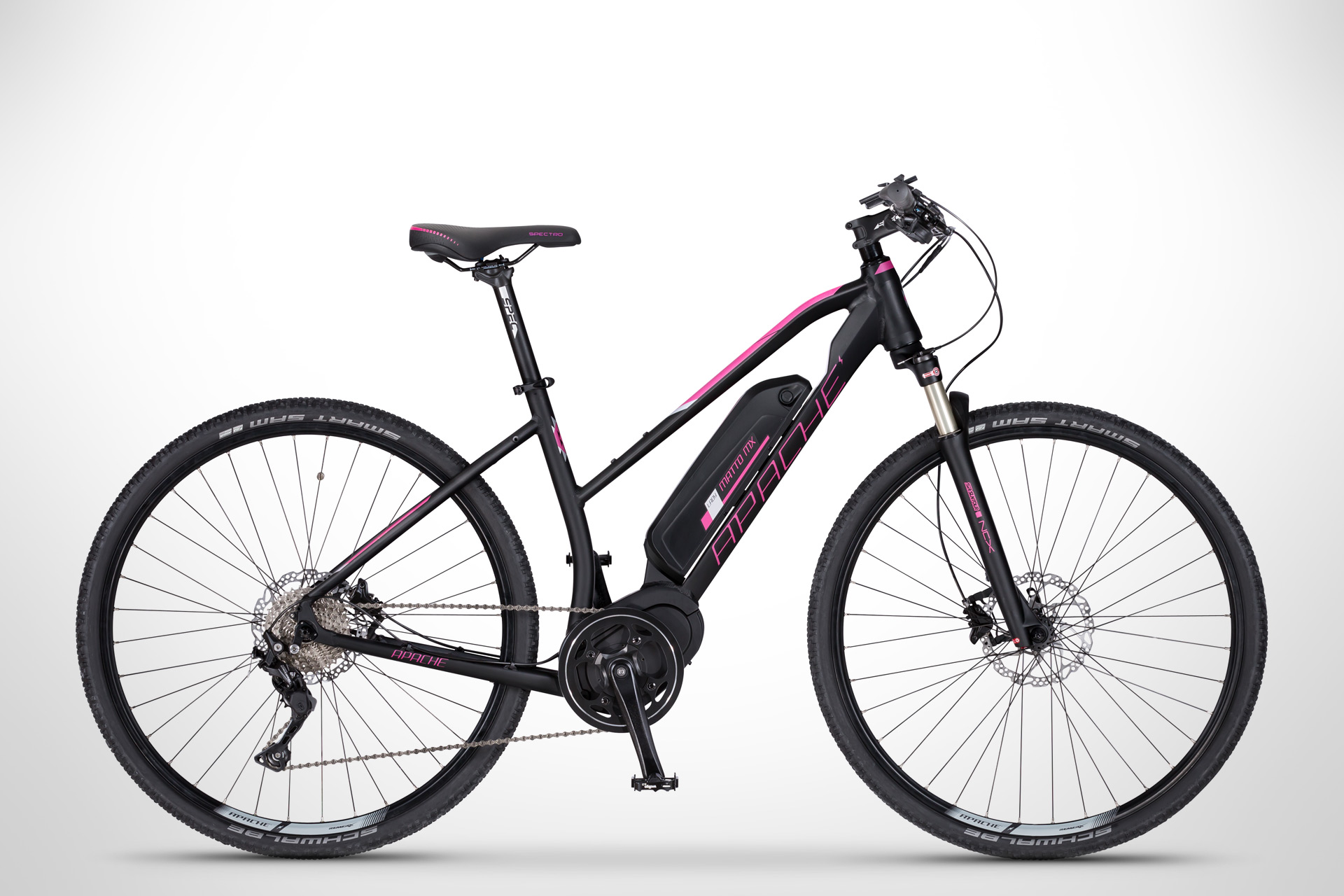 Široce oblíbené krosové elektrokolo vstupuje do nové sezony se zcela přepracovaným hliníkovým rámem s částečně integrovanou baterií a extrémně výkonnou pohonnou jednotkou ve svém středu. Sportovně střižená geometrie, kvalitní vzduchová vidlice i silné kotoučové brzdy toto elektrokolo předurčují pro použití na silnicích, cyklostezkách, ale i polních a lesních cestách všeho druhu. Matto Lady MX bude oporou sportovně založeným i rekreačním cyklistkám bez rozdílu a jako takový jasně dokazuje, že krosové elektrokolo může báječně fungovat i bez značkového pohonu věhlasného jména.