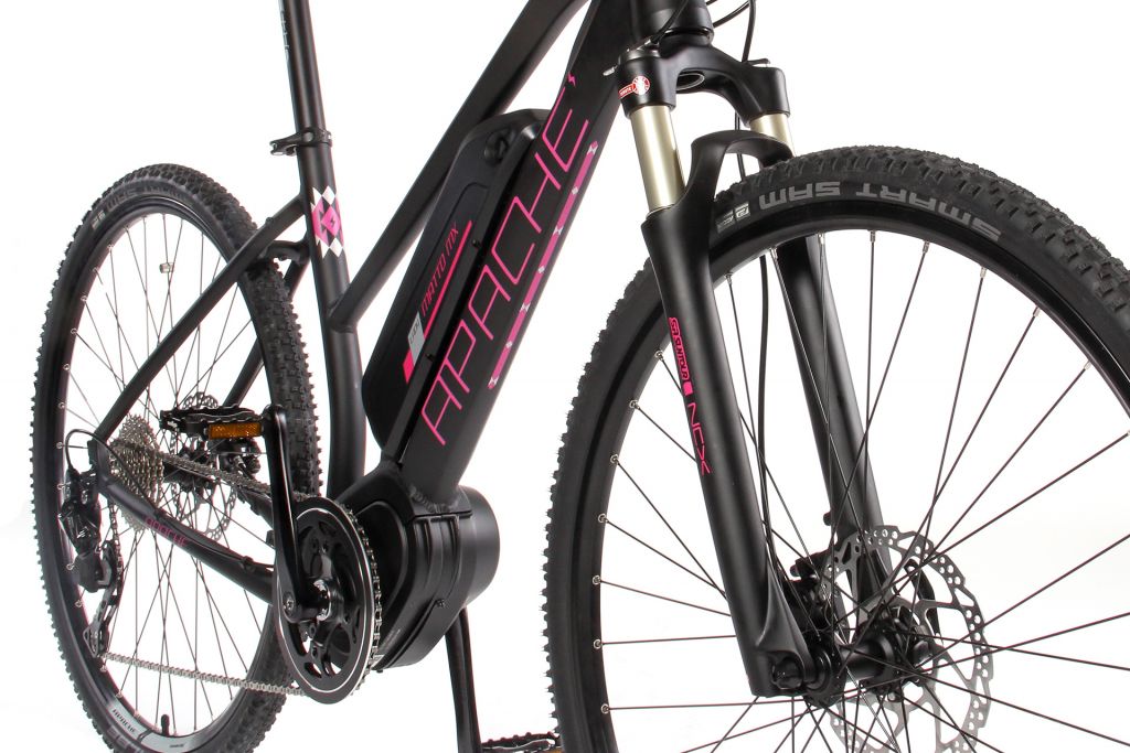 • kompletně přepracovaný hliníkový rám se sportovní dámskou geometrií a částečně integrovanou baterií